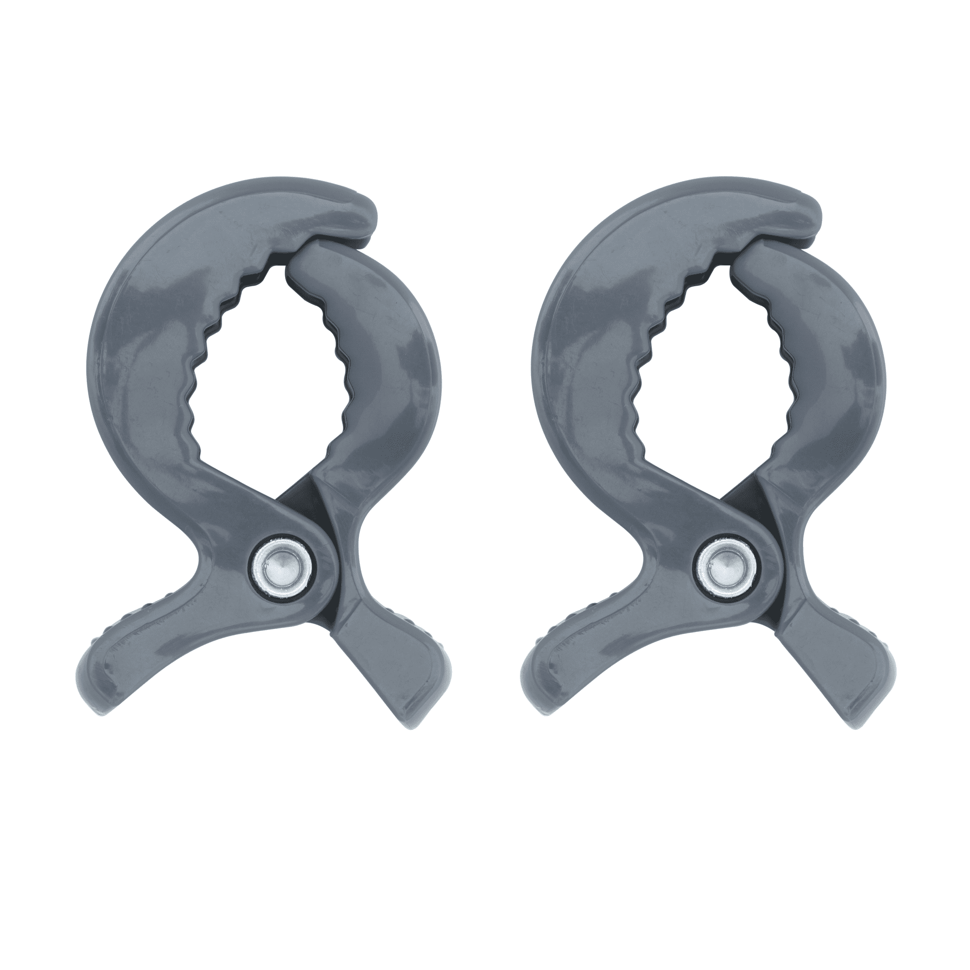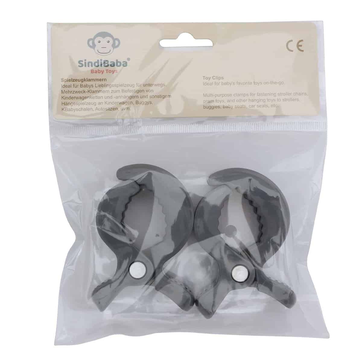 Befestigungsklammern im 2er Set in Grau (sanftes Castle-Rock-Grau) zur sicheren und flexiblen Fixierung von Babyspielzeug an Kinderwagen, Spielbögen oder Babyschalen.
