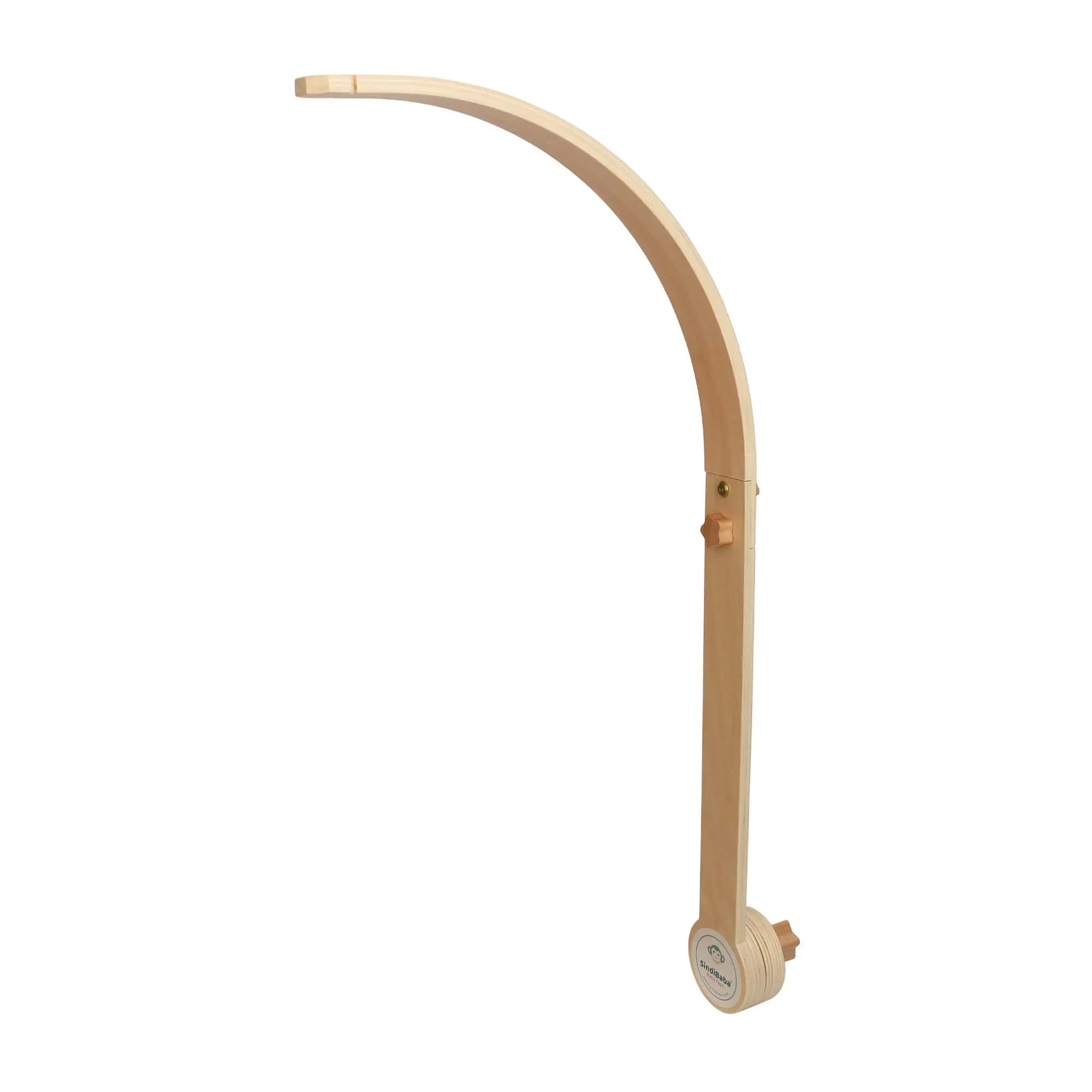 Zweiteilige Holz-Mobile-Halterung zum Anklemmen am Babybett mit geschwungener Form und werkzeugloser Montage. Geeignet für Mobiles und Musikspielwerke.