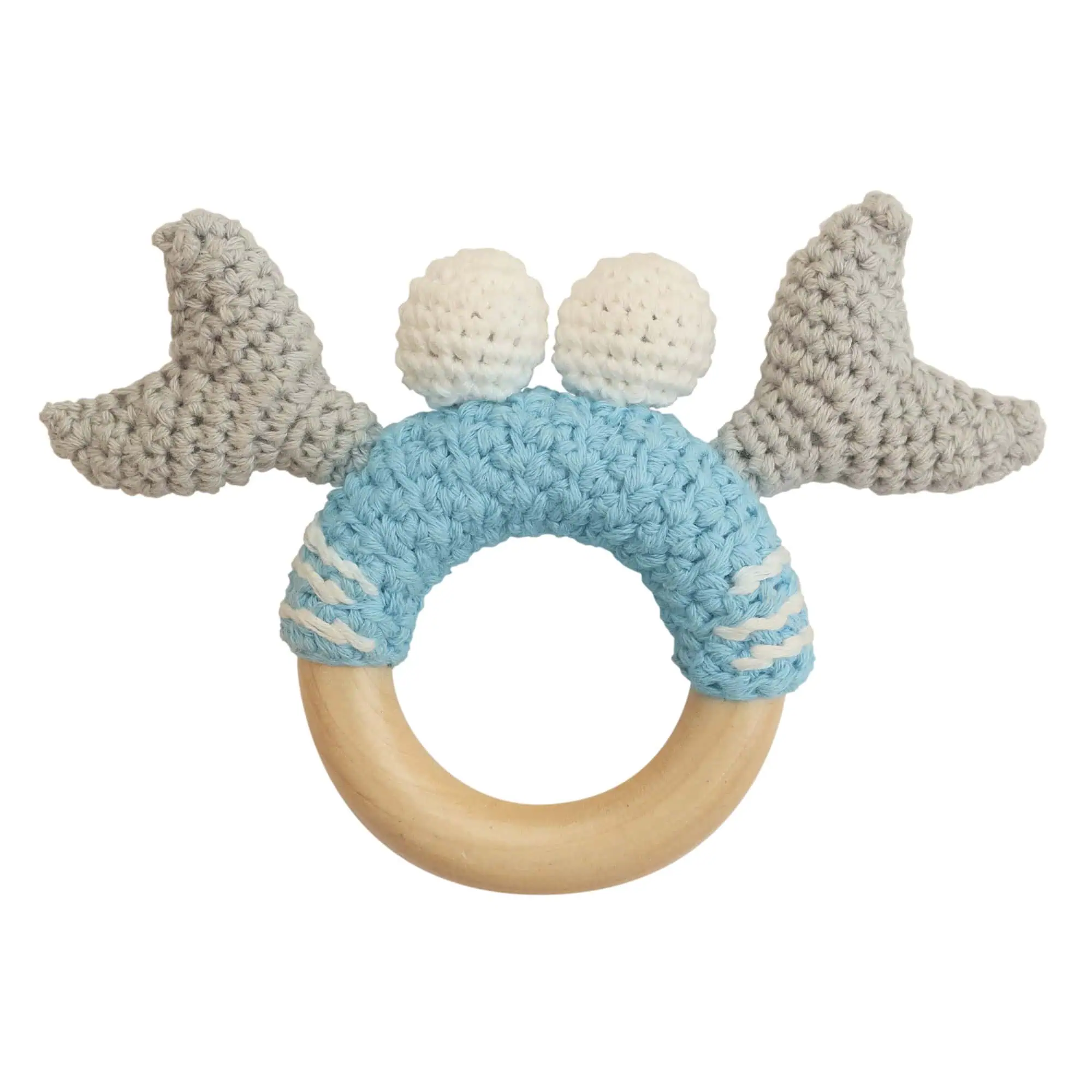 Handgefertigte Ringrassel Krabbe PINCER aus reiner Baumwolle.