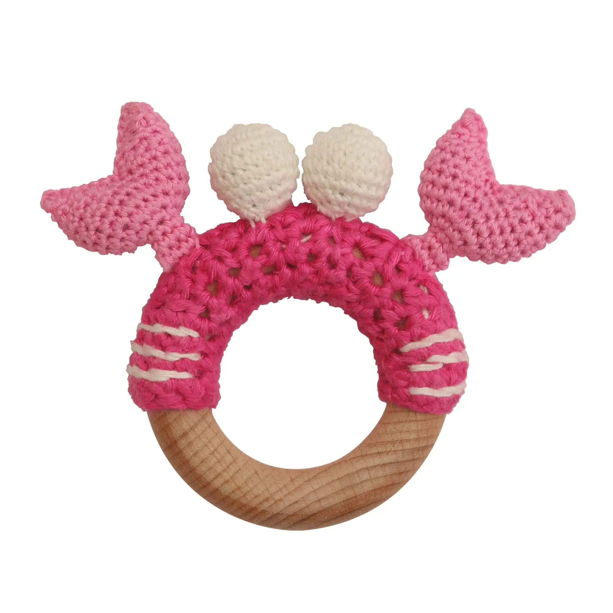 Handgefertigte Ringrassel Krabbe PINCER aus reiner Baumwolle.