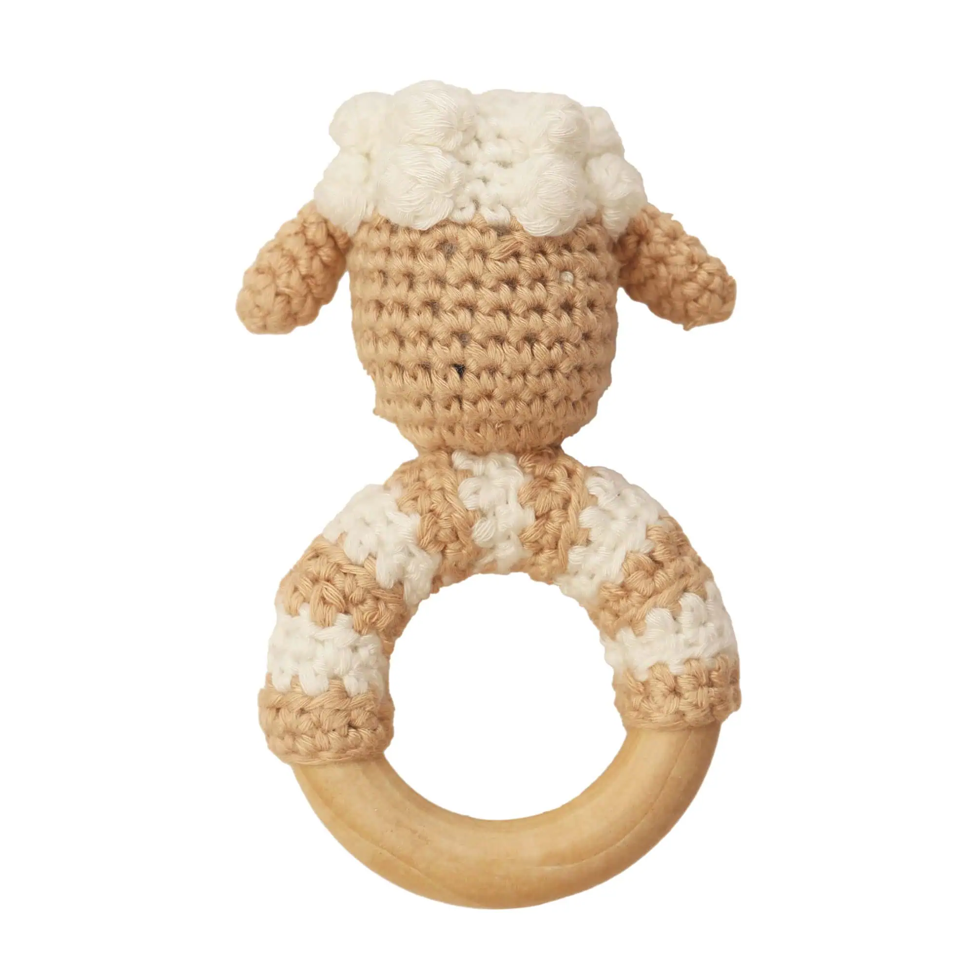 Handgefertigte Ringrassel Schaf DOLLY aus reiner Baumwolle.