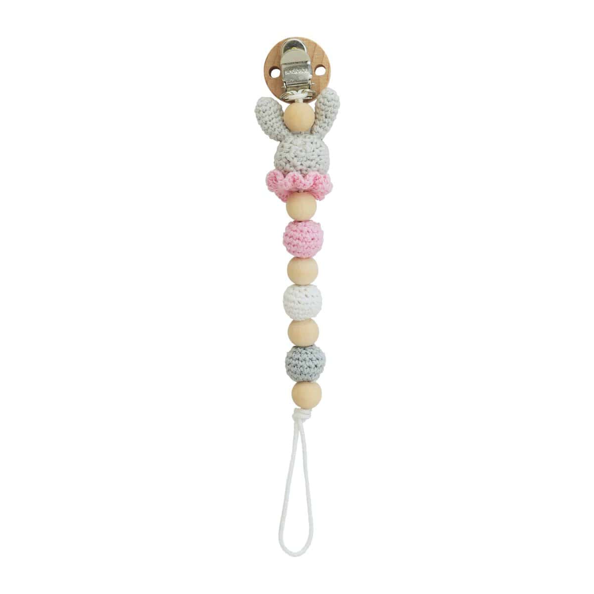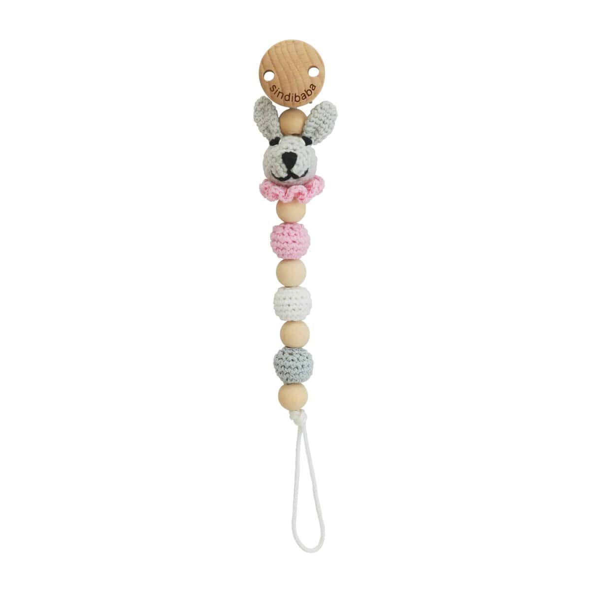 Schnullerkette Hase BOBBY in Rosa