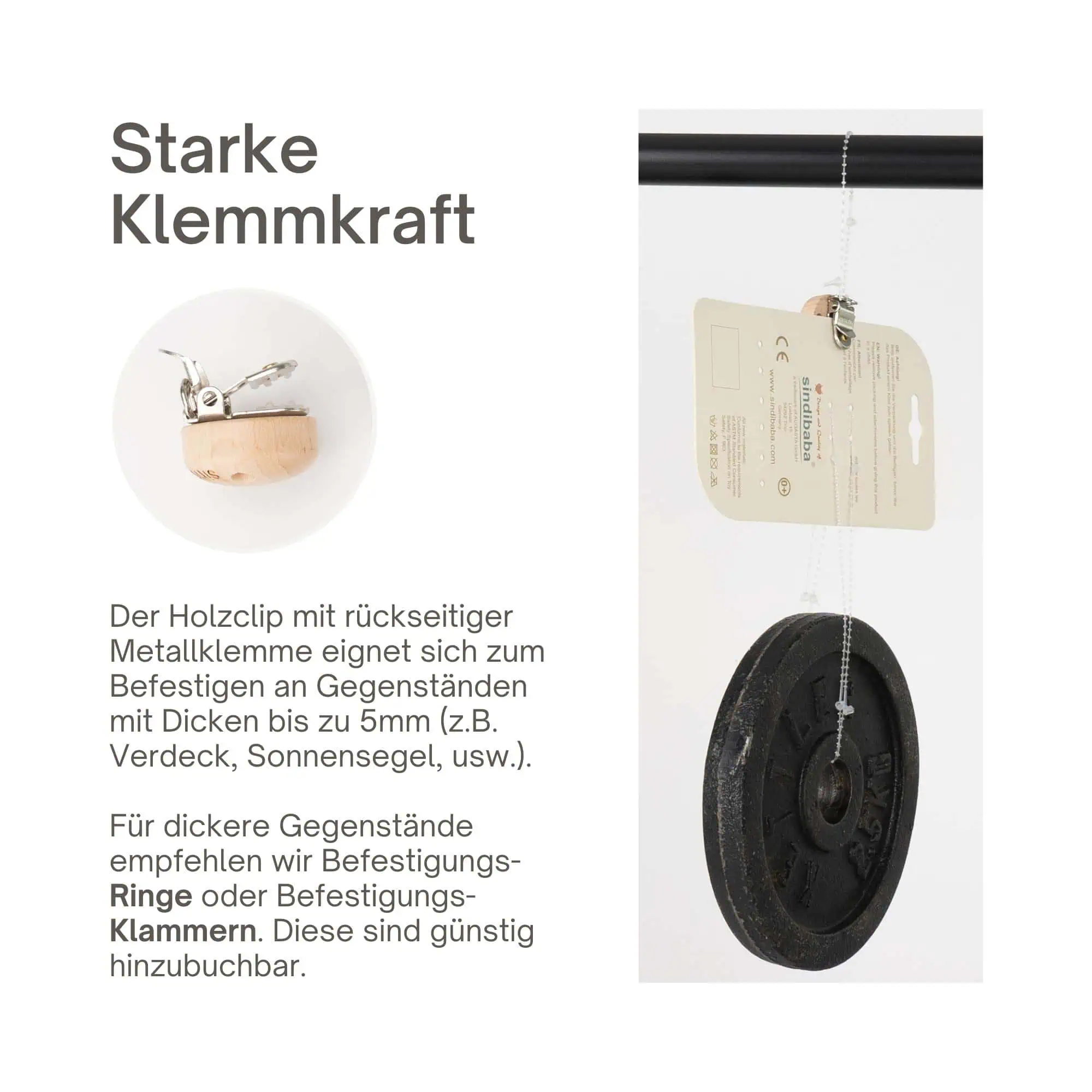 - Flexible attachment: With wooden clips or alternative attachment elements.