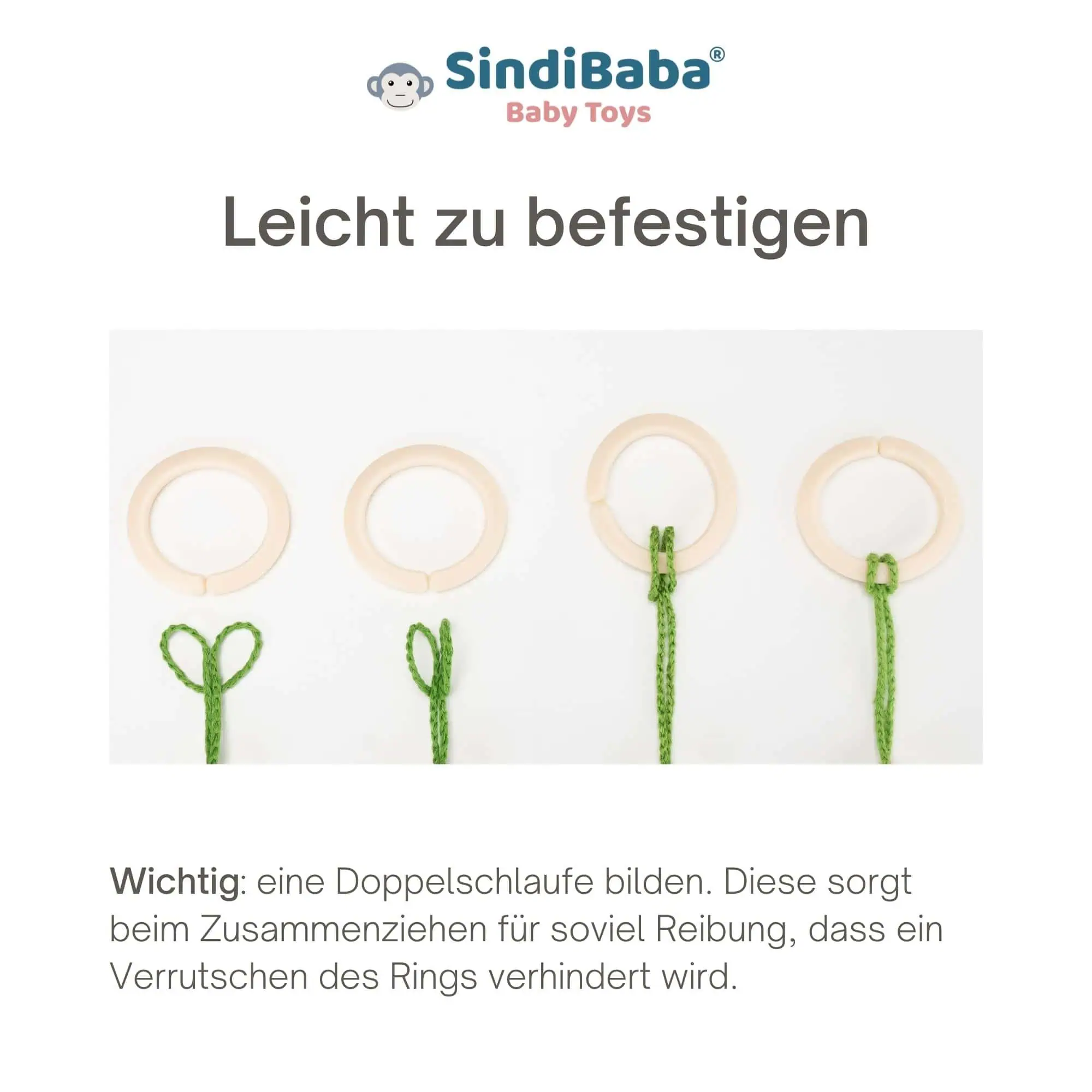 Um mögliche Verletzungen durch Verheddern zu verhindern, ist dieses Spielzeug zu entfernen, sobald das Kind beginnt zu versuchen, auf allen vieren zu krabbeln.