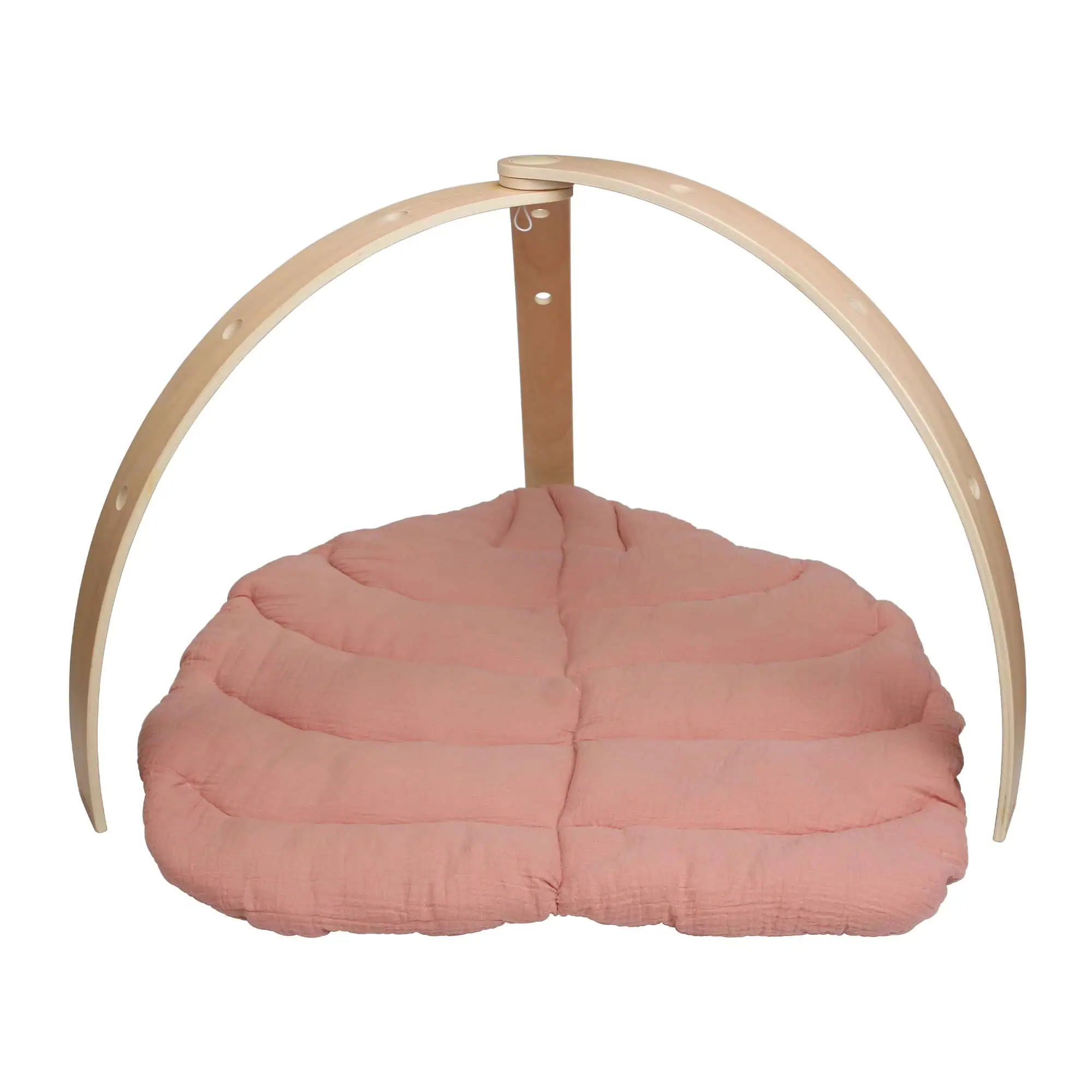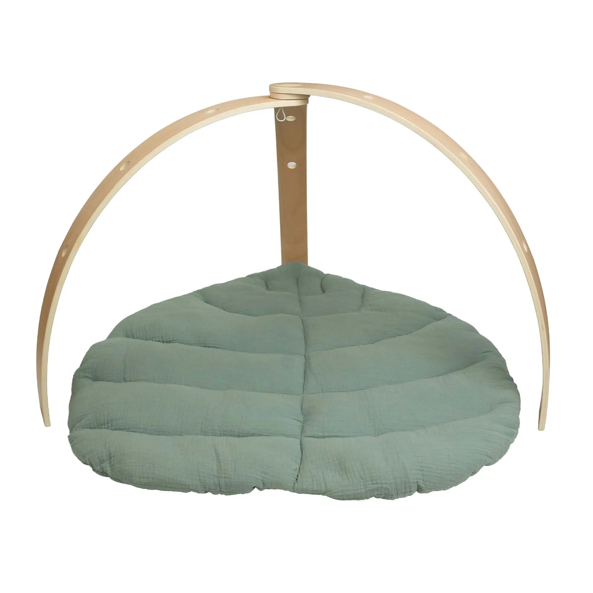 The wooden play gym with three support feet provides a stable, freestanding base for creating baby play environments. It allows graspers, hanging toys or detachable mobile elements to be positioned safely within a clearly defined play area.